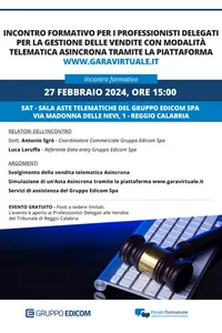 INCONTRO FORMATIVO PER I PROFESSIONISTI DELEGATI PER LA GESTIONE DELLE VENDITE CON MODALITÀ TELEMATICA ASINCRONA TRAMITE LA PIATTAFORMA WWW.GARAVIRTUALE.IT
