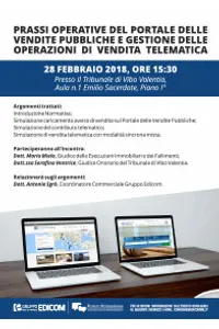 Incontro dedicato ai servizi di supporto per i professionisti delegati e curatori fallimentari, per l’inserimento dell’avviso di vendita sul Portale delle Vendite Pubbliche e presentazione dei portali per la dismissione dei beni mobili ed immobili, mediante aste telematiche.